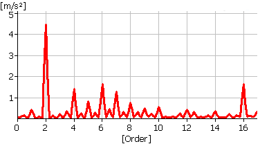 Řádová analýzaŘádová analýza (Order analysis) je speciálním typem frekvenční analýzy, která využívá běžnou analýzu FFT, ale před jejím provedením provede úpravy v naměřeném časovém signálu. K měření s použitím řádové analýzy je nutné minimálně dvoukanálové měřidlo. První kanál slouží k měření diagnostické veličiny zvuku nebo vibrací a druhý kanál se používá pro synchronizaci počátku a konce záznamu (realizace jedné otáčky). Algoritmus řádové analýzy z naměřeného časového záznamu zajistí, aby délka záznamu (počet vzorků) pro analýzu byla stále stejná bez ohledu na otáčky stroje. Tímto způsobem je eliminován skluz otáček. Výsledné spektrum řádové analýzy bude mít na frekvenční ose násobky otáčkové frekvence (místo frekvence u FFT spektra). Díky tomuto přepočtu se čáry ve spektru řádové analýzy nebudou frekvenčně pohybovat při změně otáček. Řádová analýza se z tohoto důvodu hodí k měření rotujících součástí, u kterých dochází k změně rychlosti otáček nebo k jejich kolísání a diagnostikované frekvence jsou násobky otáčkové frekvence. Typickým příkladem pro použití řádové analýzy je měření hluku nebo vibrací převodovek nebo pohonného systému vozidel. |
